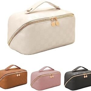 High Quality Makeup Bag: This Women’s Travel Makeup Bag Is Made Of PU Leather On The Outside And Lining, Making It Easier To Clean.