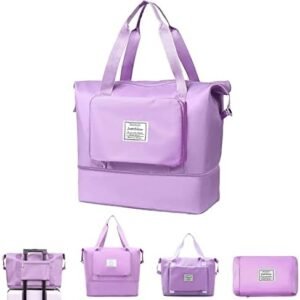 Travel Duffel Bag, Foldable Gym Bag Overnight Weekend Bags for Women, Lightweight Hospital Bag with Wet and Dry Separation Bag, Large Holdall Bag Cabin Bag for Sports and Travel