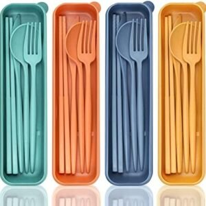【One cutlery set per working day】 If you need to bring lunch and flatware sets workday, but always forget or lose beautiful stainless steel flatware or plastic silverware. And you don’t want to bring heavy forks and spoons silverware set to work every day. 4 sets portable wheat straw lunch utensils set for work will help you solve this problem perfectly. You can use one color eco friendly utensils a day. These cutlery set disposable are also very suitable for gifts as lunch box accessories.