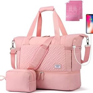 ★Oversized duffle bag:Made of high quality nylon fabric and PU leather. 21.2″/10.8″/11.7″(L*W*H). Weight: 1.5KG/ 3.3 pounds.Larger than normal gym duffel bag, suitable for 3-4 days weekender or business trip. Stylish and lovely pink to add energy to your travels.