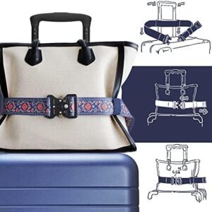 ADJUSTABLE BUCKLES AND DURABLE :The adjustable alloy buckle for easy separate your carry on bag from your luggage at all times,Once the Luggage straps belt bag are tightened there is no more risk of luggage slipping or falling apart. The travel belt for luggage can tie the luggage well,it can be adjustable, and tied rubber band full of flexibility, Gentle stretch, Will not let you bag deformation,and ensure the safety of luggage items during the journey.