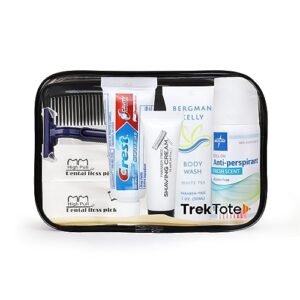 *Compact and Convenient!* Our TrekTote kit is compact and portable, fitting easily into your carry-on. Travel hassle-free with all your essentials in one place. Say goodbye to packing challenges with our thoughtful convenience kit.