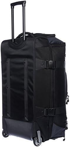 Wheeled duffel in black for traveling in comfortable, convenient style