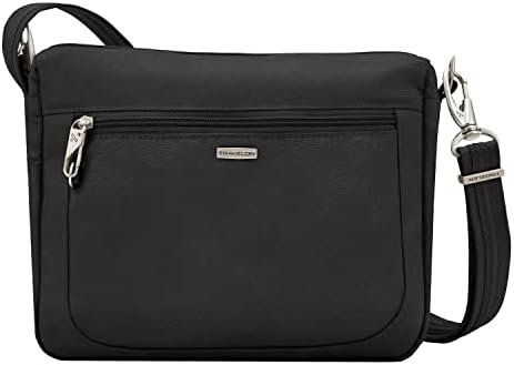 This Travelon Anti-Theft Classic E/W Crossbody bag is the perfect go everywhere bag. It features a roomy main compartment with RFID blocking card and passport slots, an open top pocket, zippered wall pocket and a tethered key clip with LED light. Front and rear zippered pockets are perfect for quick grab items and a smart phone. Travel securely and confidently with Travelon’s anti-theft features including slash-resistant construction, locking compartments, slash-resistant and locking straps to keep you and your belongings protected.