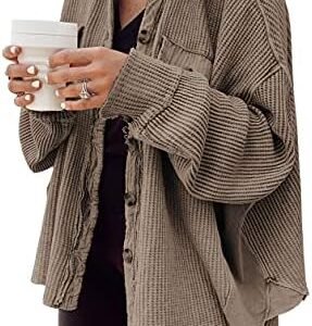 Casual and loose fit style boyfriend shirt jacket, made of high quality and textured waffle knitted material; Suit for spring, fall and warm winter wear, can perfectly match with various tops and bottoms for a leisure and street style, such as your t shirt, skirt, overalls, dress, jeans, leggings, sneakers, etc