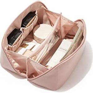 ✅Easier Access Design:The Flat makeup bag that moves as fast as you do! It opens flat so you can see all your makeup at once — and then quickly scrunch things closed when you’re ready to go.